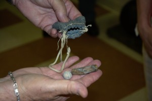 An musket ball and flint from the pocket of the Revolutionary War officer.