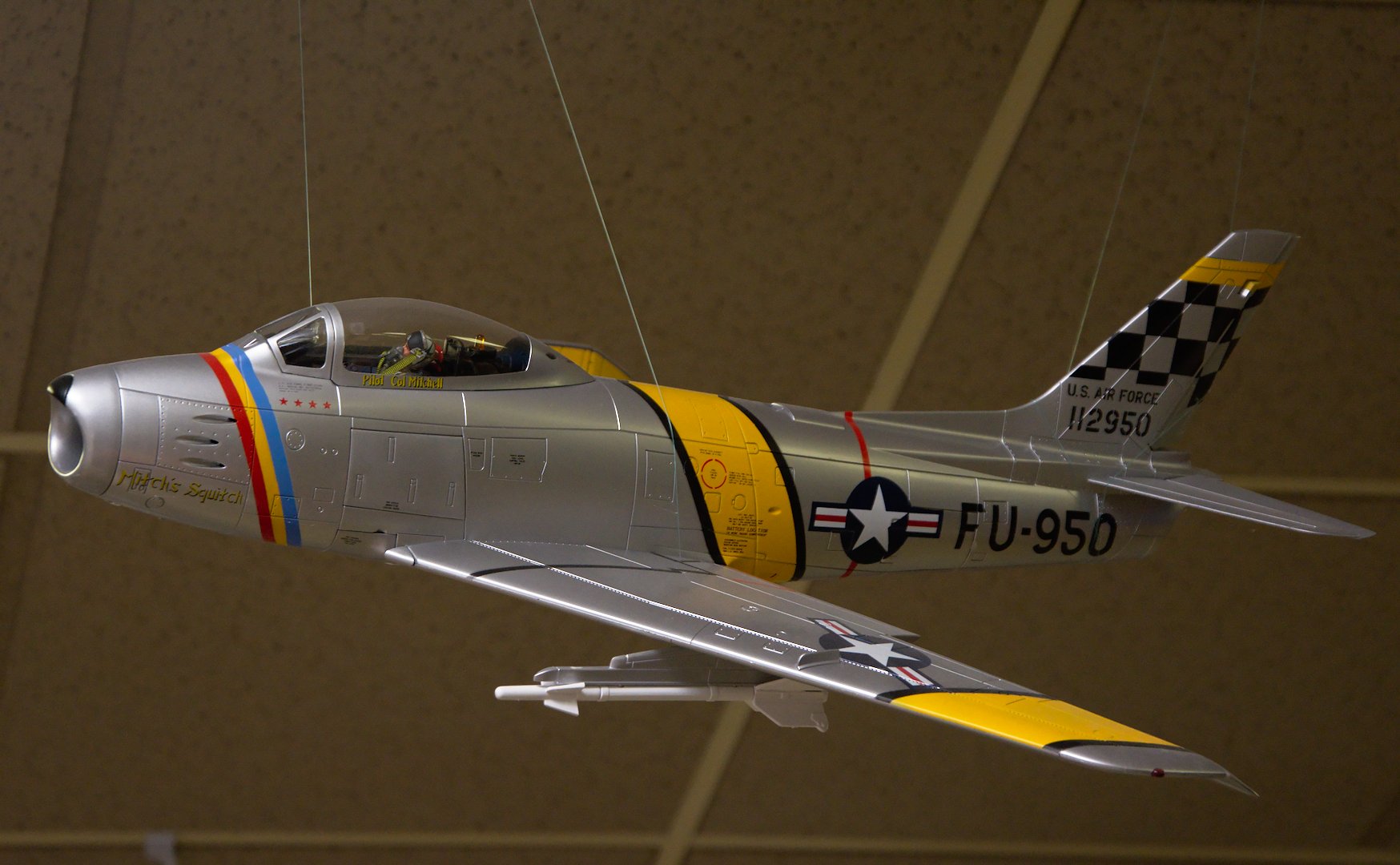 Col. John Mitchell’s F-86 as Wing Commander of the 51st Fighter Interceptor Wing “Mitch’s Squitch”. He led the flight of P-38s in WW II that shot down Admiral Yamamoto.