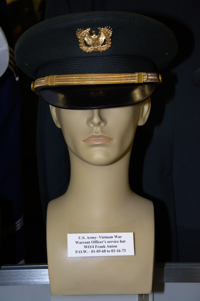 Vietnam War US Army Warrant Officer’s service hat worn by WO/4 Frank Anton, POW 01-15-1968 to 03-16-1973. Vietnam War US Army Warrant Officer’s service hat worn by WO/4 Frank Anton, POW 01-15-1968 to 03-16-1973.
