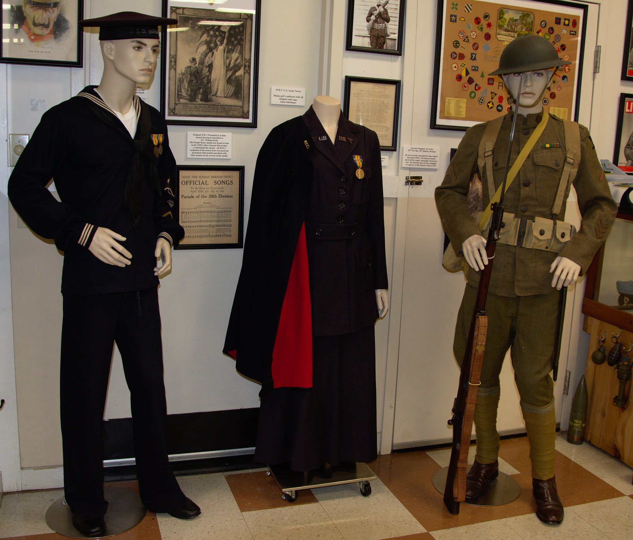 World War I Uniforms WWI Uniforms. Tubbs, US Navy (left) Alma Sidelinger, US Army Nurse (center) Cpl Job Chapman, US Army (right)