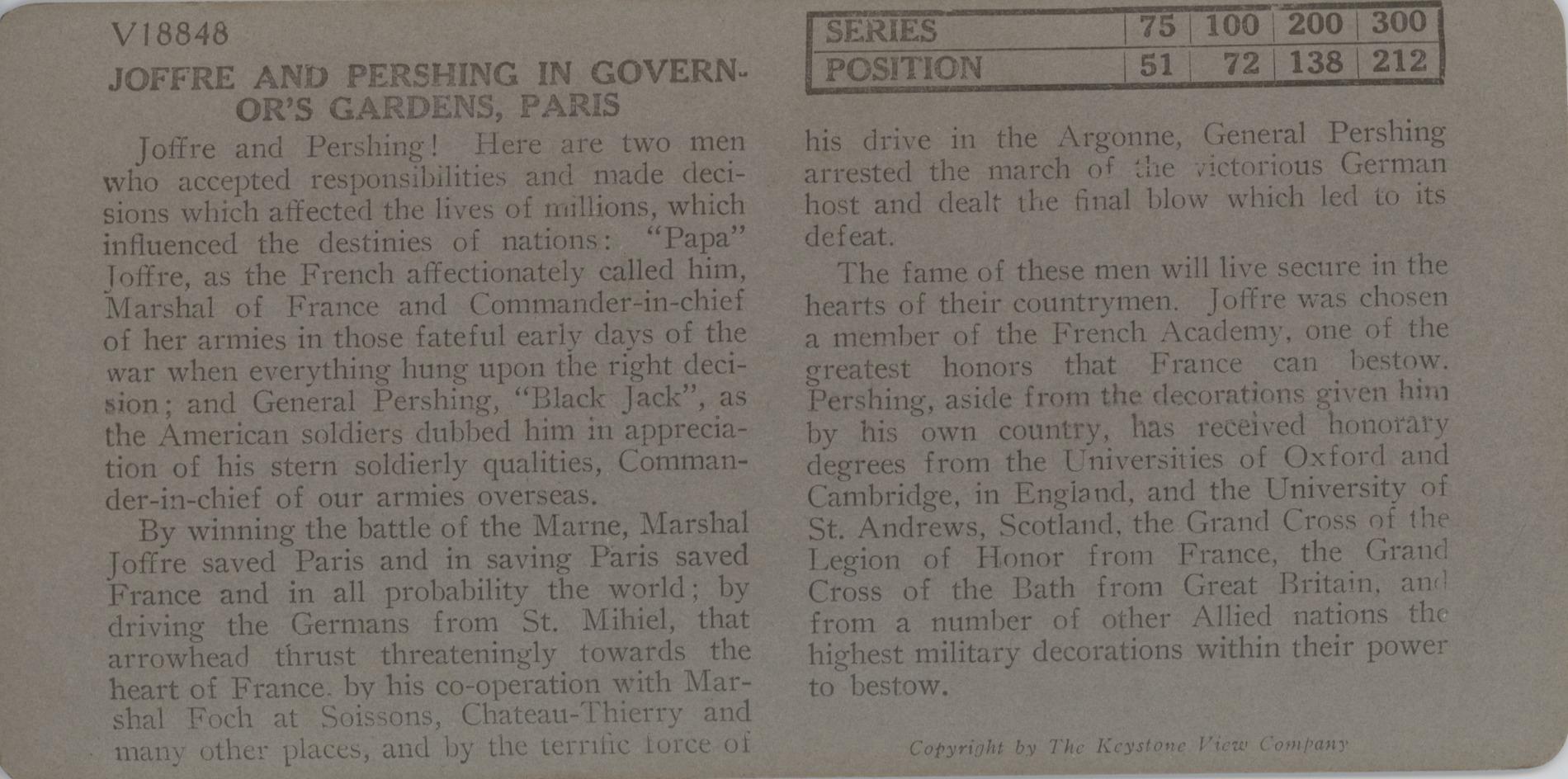 Joffre and Pershing in Governor’s Gardens, Paris